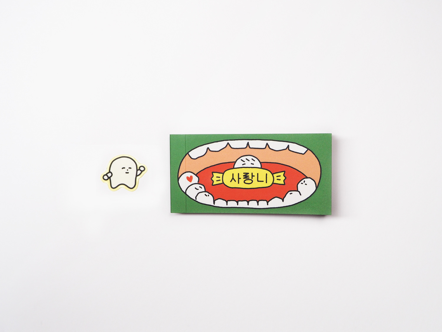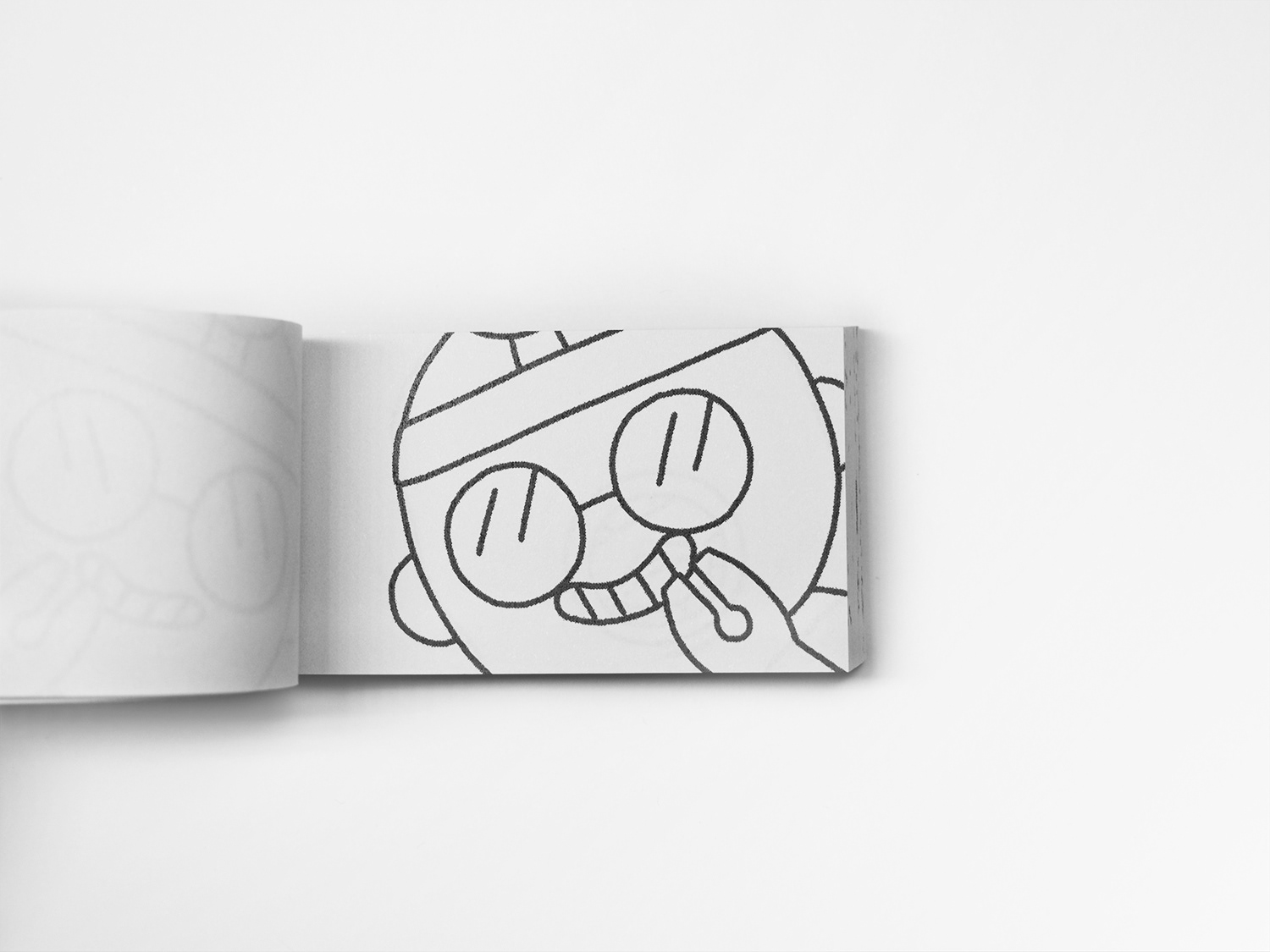 사랑니를 뽑고 얼굴이 퉁퉁 부었을 때, 친구들이 '사탕 물고 있냐', '나도 사탕 줘' 하고 놀렸던 기억에서 만든 플립북입니다.